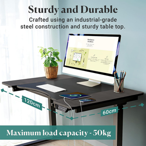 Crafted with a solid wood surface and industrial-grade steel legs, the desk offers excellent stability and can support up to 50kg of weight. Available in two modern color options, it also features a sleek pull-out front panel and built-in USB and USB-C charging ports for added convenience.