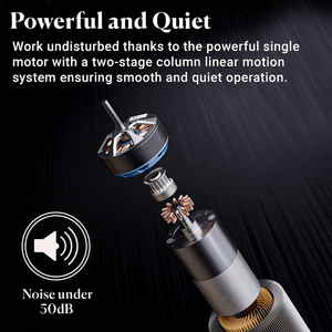 Equipped with a powerful single motor and two-stage linear mechanism, the desk adjusts at a speed of 25mm per second with minimal noise—under 50dB—allowing for quiet transitions that won’t disrupt your workflow or those around you.