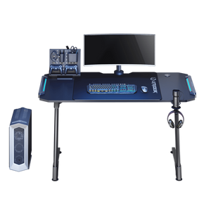 Transform your gaming setup with the SPACE XXL desk, a masterpiece of futuristic design that blends aesthetics with unparalleled utility. Inspired by the sleek sophistication of spaceship control panels, this desk incorporates unique decorative covers and vibrant multicolor RGB lighting to create an immersive gaming atmosphere. The desk's distinctive Z-shaped frame not only enhances its visual appeal but ensures exceptional stability.